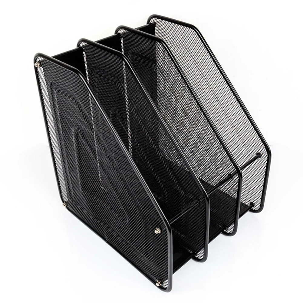 معرض ل منظم سطح المكتب شبكة معدن سهل تجميع تخزين الثلاثي رف الدفاتر الكتب مجلد المستندات الأسود مكتب حامل المجلات