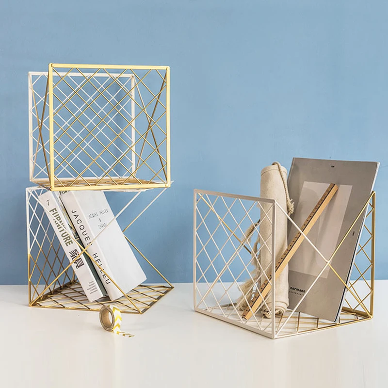 المنتجات ذات الصلة ل Magazine Racks و الذهبي الأبيض المعادن الكتب مجلة القرطاسية مربع مخزن عرض تصميم حامل كشك الكتب طالب مكتب رف الأحذية الحديثة الهندسة