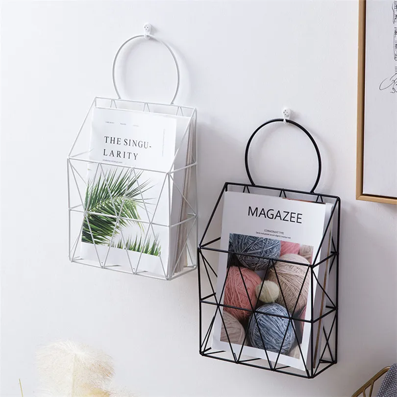 استعارات من المعادن سلة التخزين بولت الإدراج شنقا تخزين الرف الحديد مكتب مجلة صحيفة المجلات منظم المنزل الديكور حامل